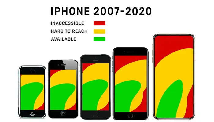 As smartphone screens have grown, this zone has shifted downward and toward the centre of the screen.